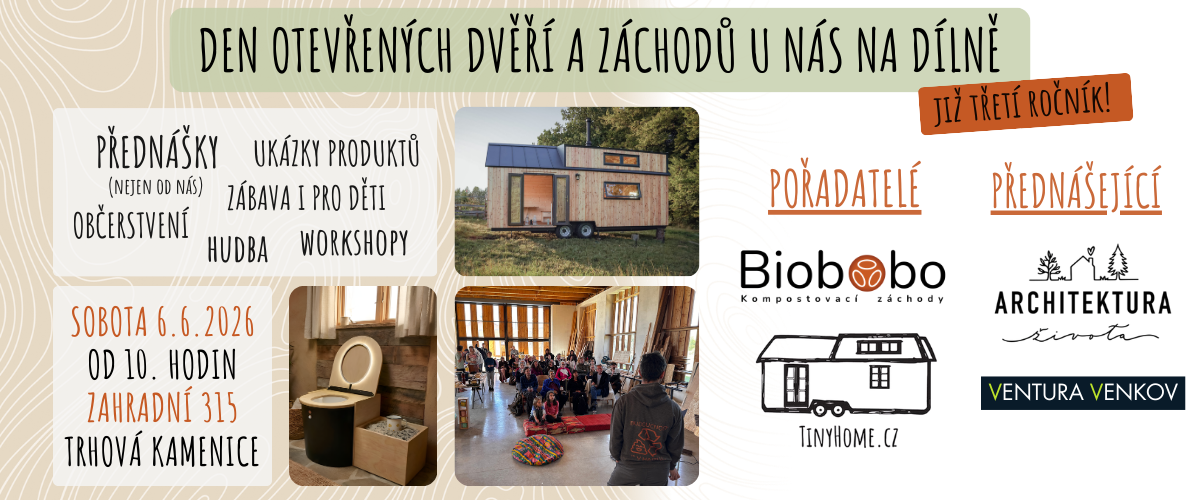 Přijďte k nám do dílny a objevte svět ekologických toalet, kadibudek, Tiny Housů a udržitelného života. Letos se k nám přidá hned několik skvělých hostů!